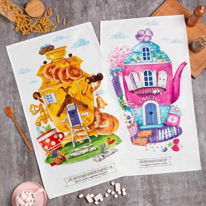 Набор полотенец "Этель" Душистый чай 40х73 см - 2 шт., 100% хлопок, саржа