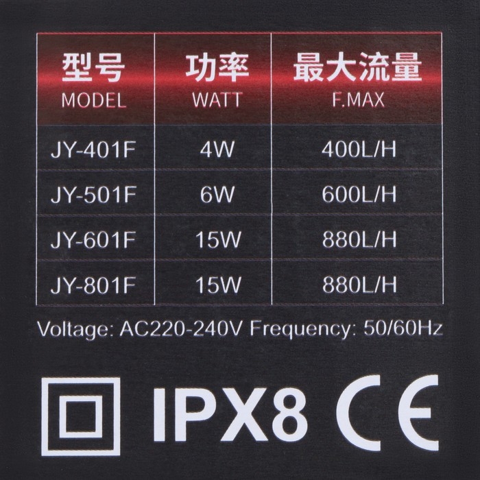 Фильтр внутренний JINGYE JY-601F, 880 л/ч, 15 Вт