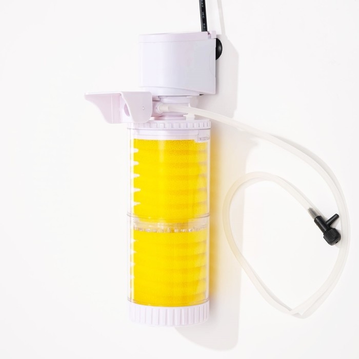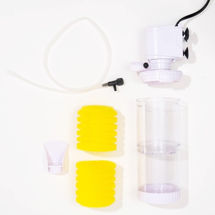 Оснащен двумя секциями для очистки воды: губки улавливают крупные частицы и загрязнения, эффективно очищая воду в аквариуме.