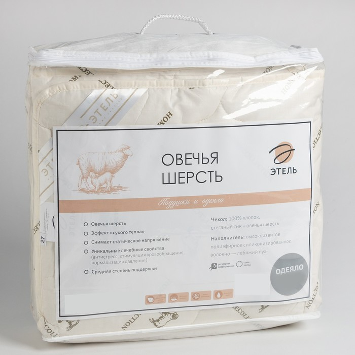 Одеяло "Этель" Овечья шерсть 140*205 см, тик, 300 гр/м2