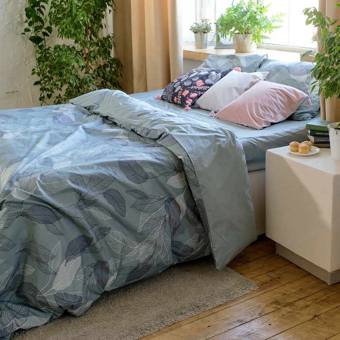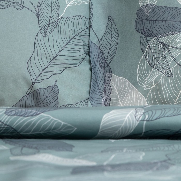Постельное бельё Этель 2 сп Mint leaves, пододеяльник 175х215 см, наволочки 50х70 см 2 шт, 100% хлопок