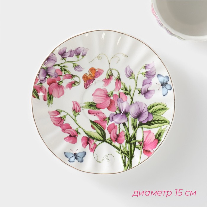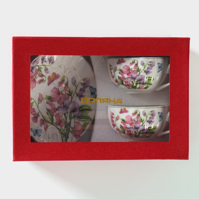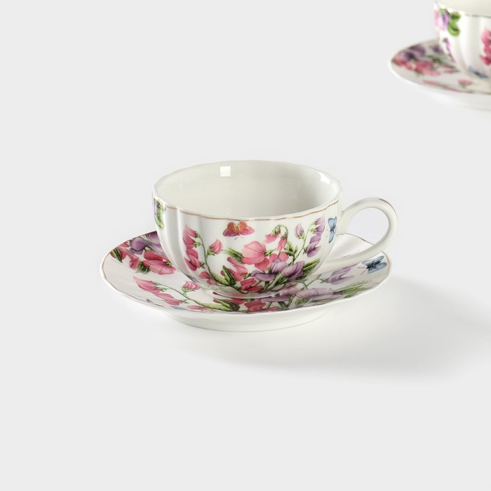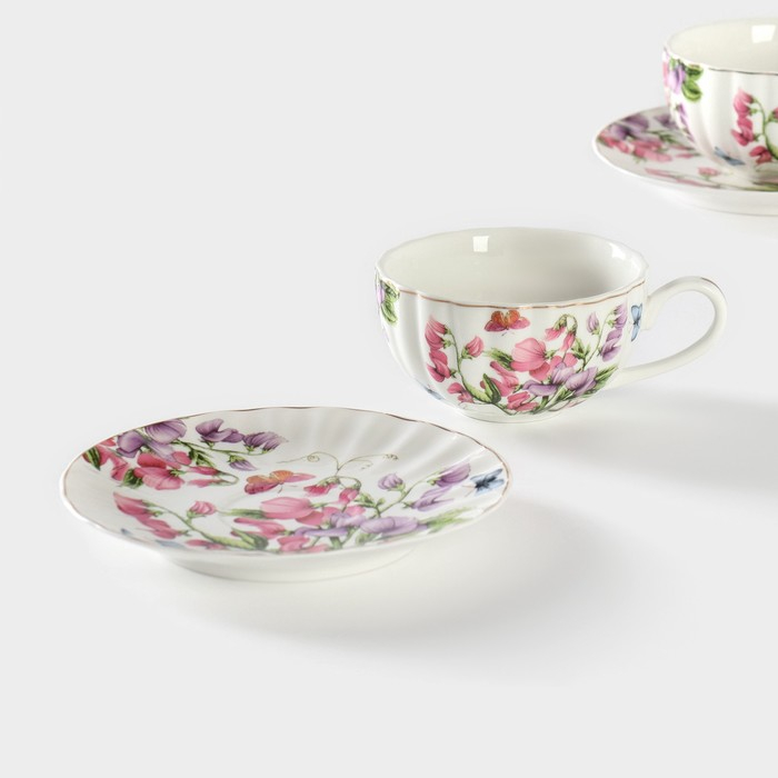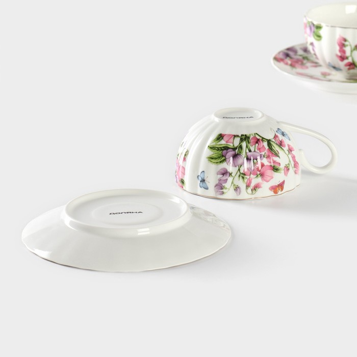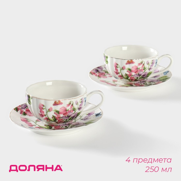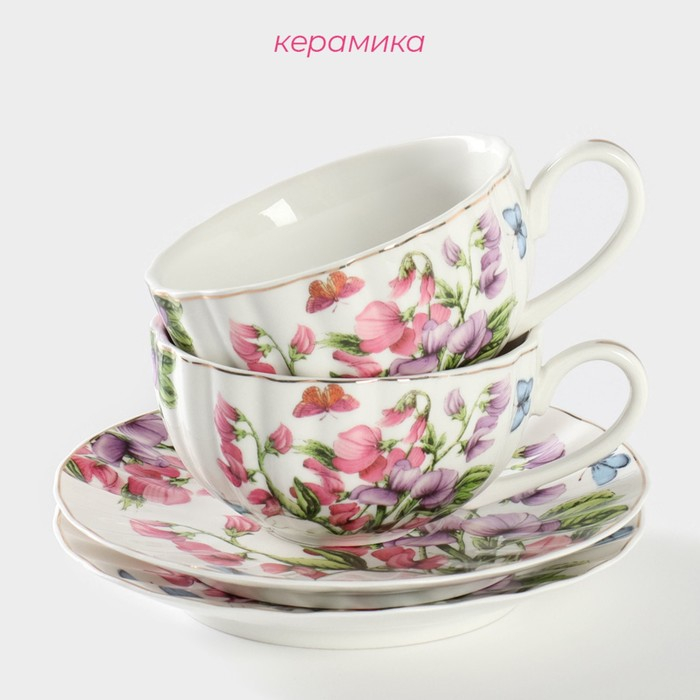 Набор чайный керамический Доляна «Колокольчики», 4 предмета: чашка 250 мл, блюдца d=15 см