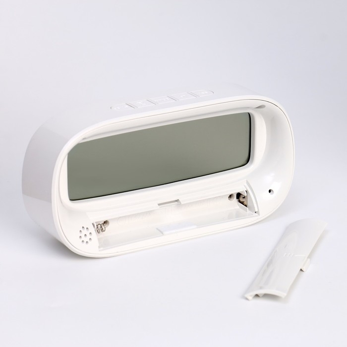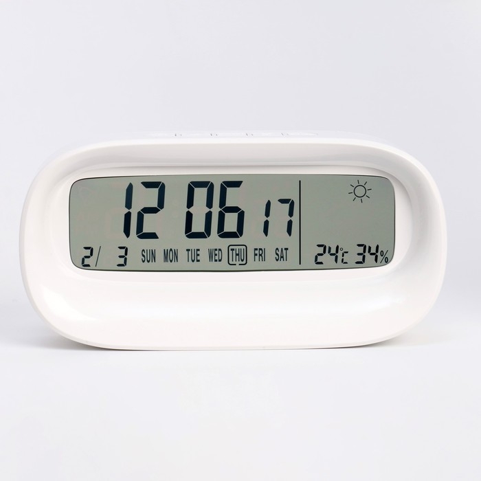Часы - будильник электронные настольные c термометром, гигрометром, 7 х 14.5 см, 2ААА