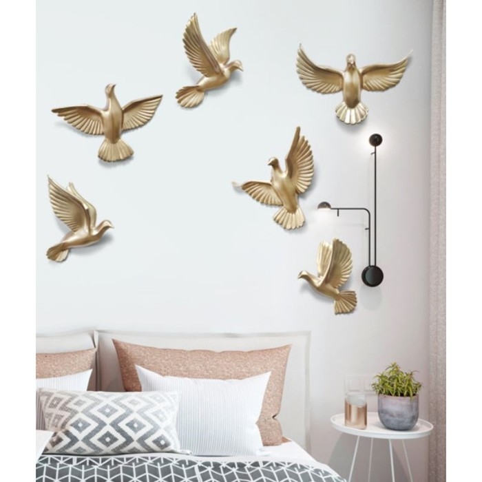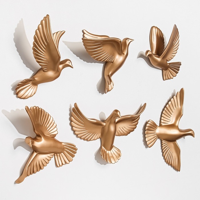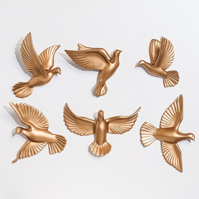 Декорация настенная панно "Птички" 6 штук 14 х 23.5 х 6 см, золото