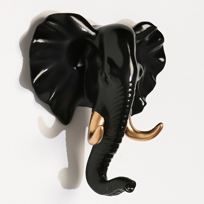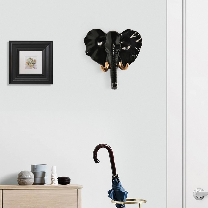Декор настенный-вешалка "Слон" 11 x 10.5 см, черный
