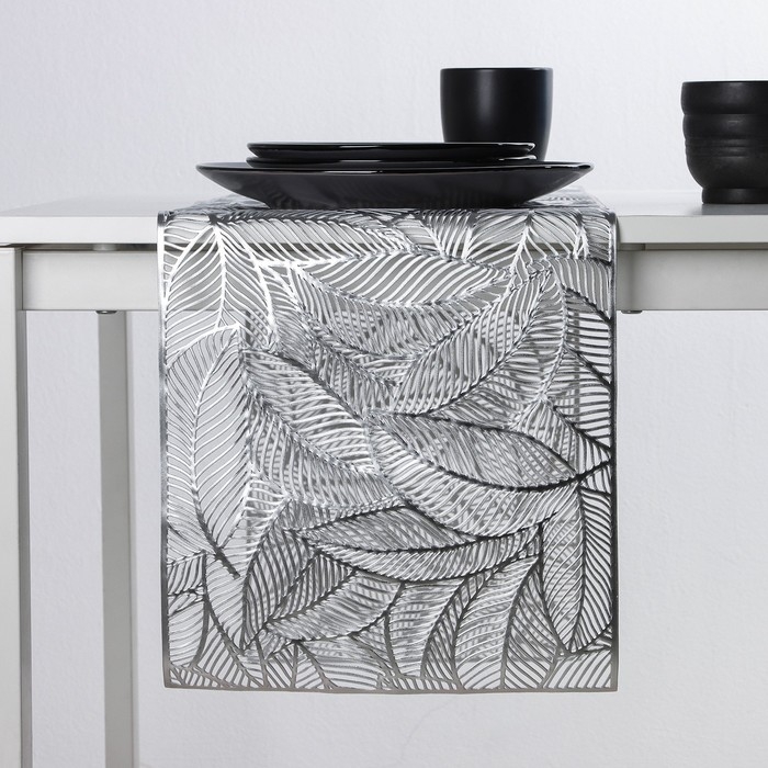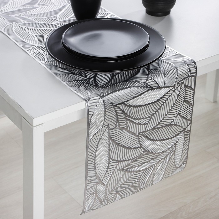 Дорожка на стол Доляна «Листопад», 30×150 см, цвет серебряный