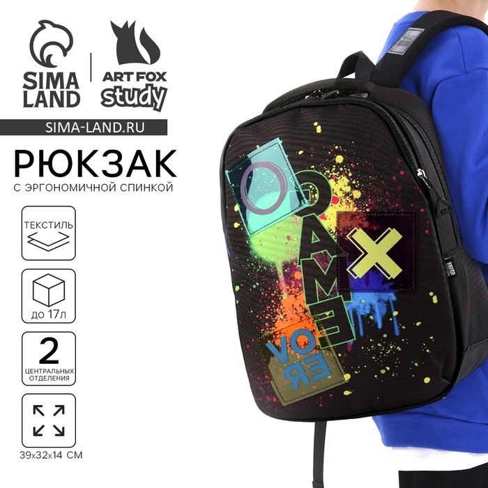 Рюкзак школьный, эргономичная спинка «1 сентября: Game over» 39x32x14 см