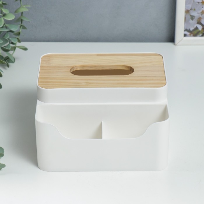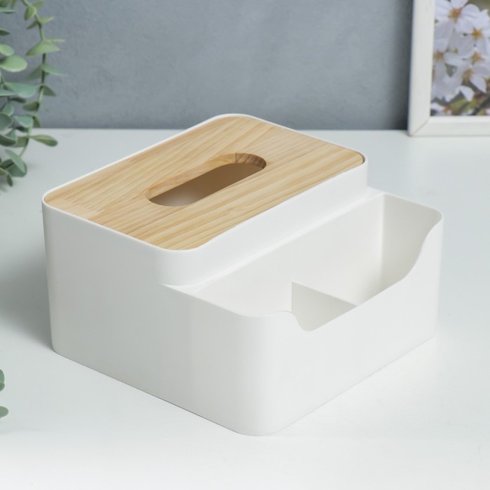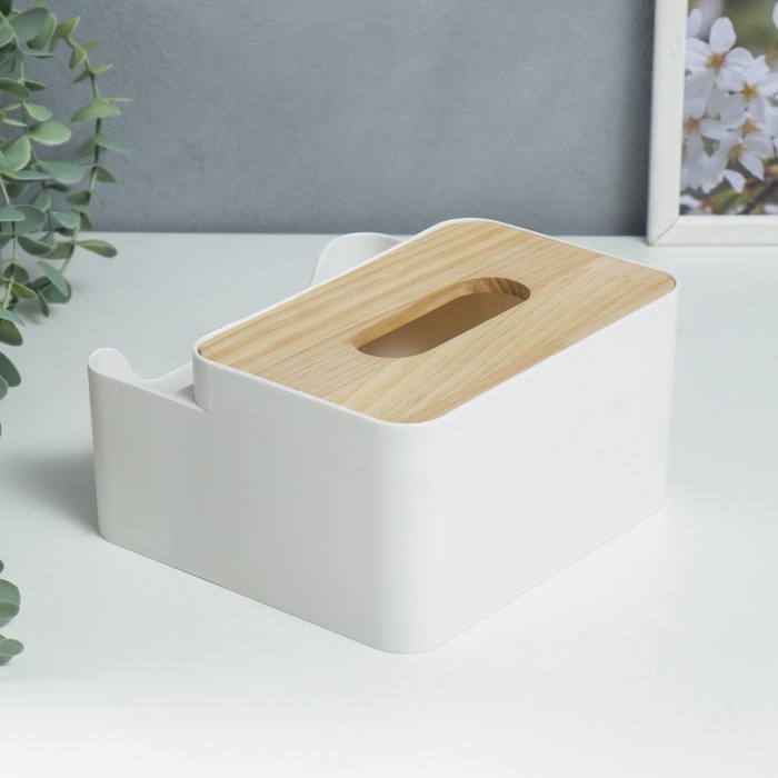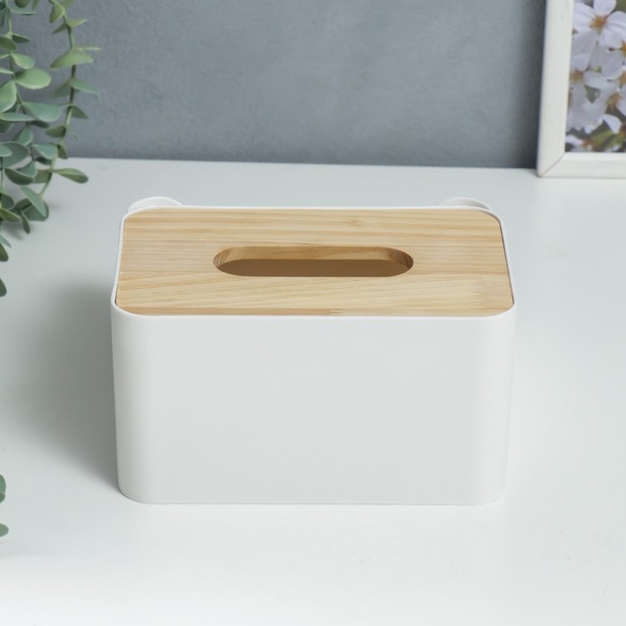 Шкатулка пластик д/салфеток+подставка "Скандинавский стиль" белая 10х17,5х17,5 см