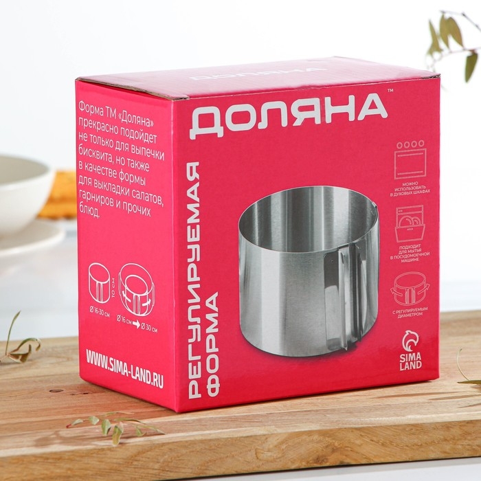 Форма для выкладки и выпечки с регулировкой размера Доляна, 16-30 см, h=10 см, цвет серебристый