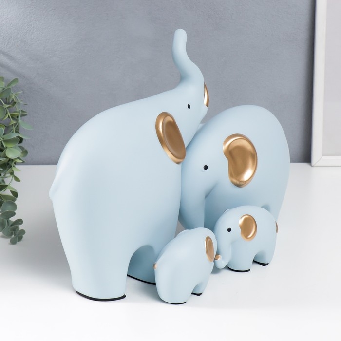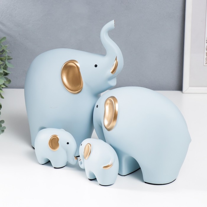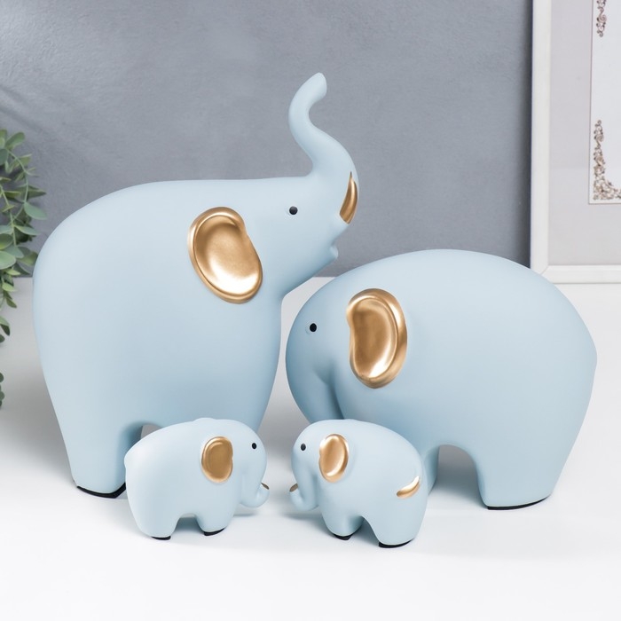 Сувенир керамика "Четыре слона" голубые набор 4 шт 7,5х9,5 17х21 27х22,5 см