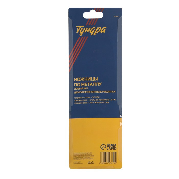 Ножницы по металлу ТУНДРА, 2К рукоятки, левый рез, 250 мм