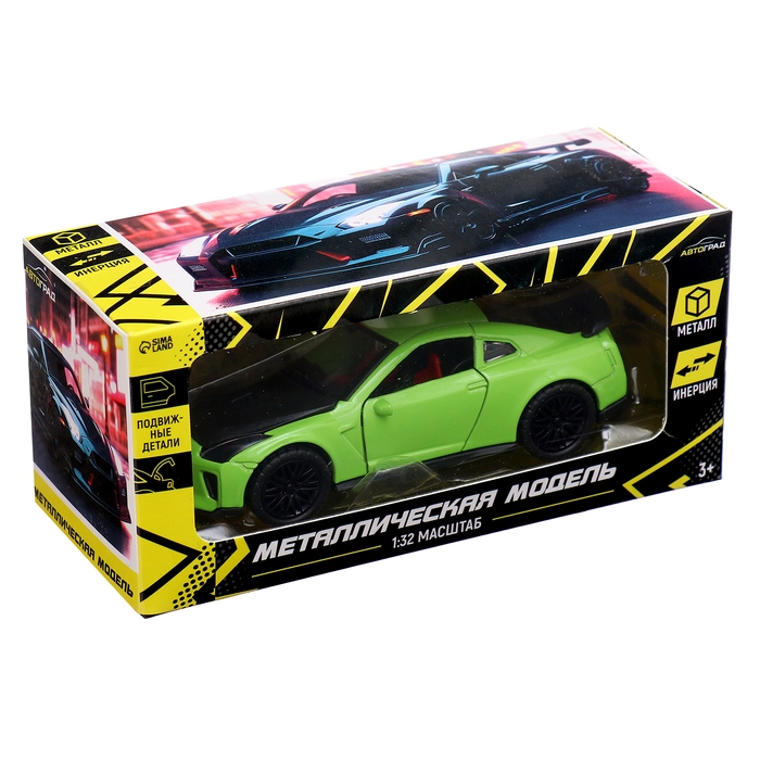 - Машинка «Спорткар» имеет металлический корпус, что делает её устойчивой к внешним воздействиям и долговечной.
