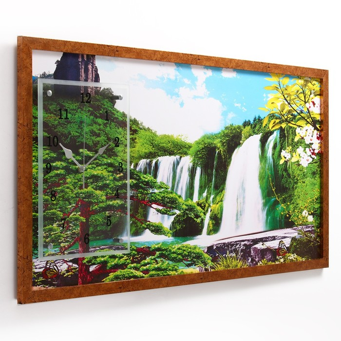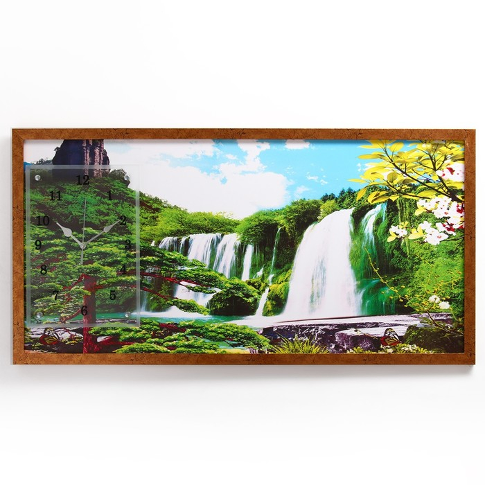 Часы-картина настенные, интерьерные "Водопад", 50 х 100 см, на холсте, бесшумные