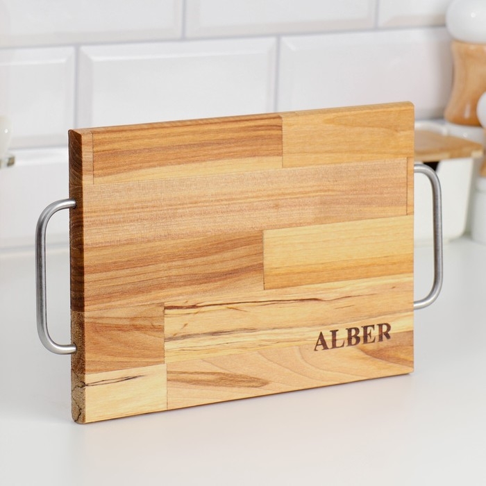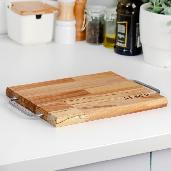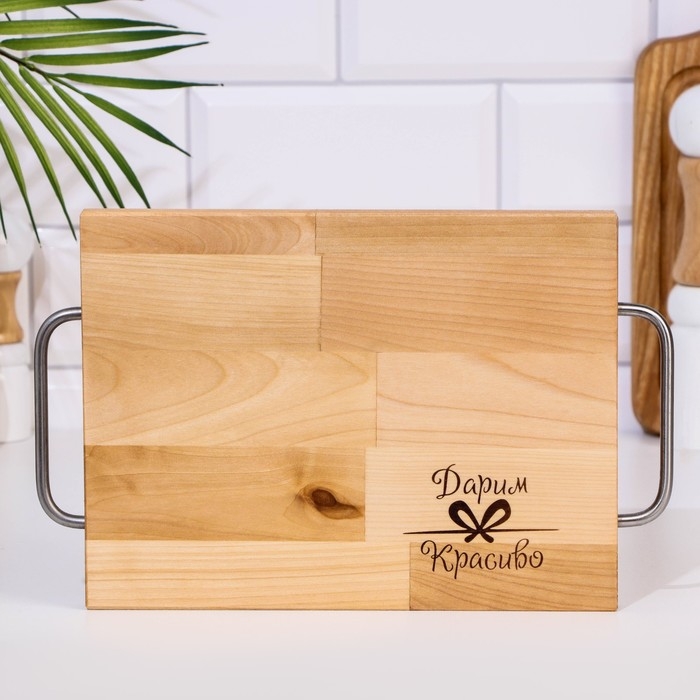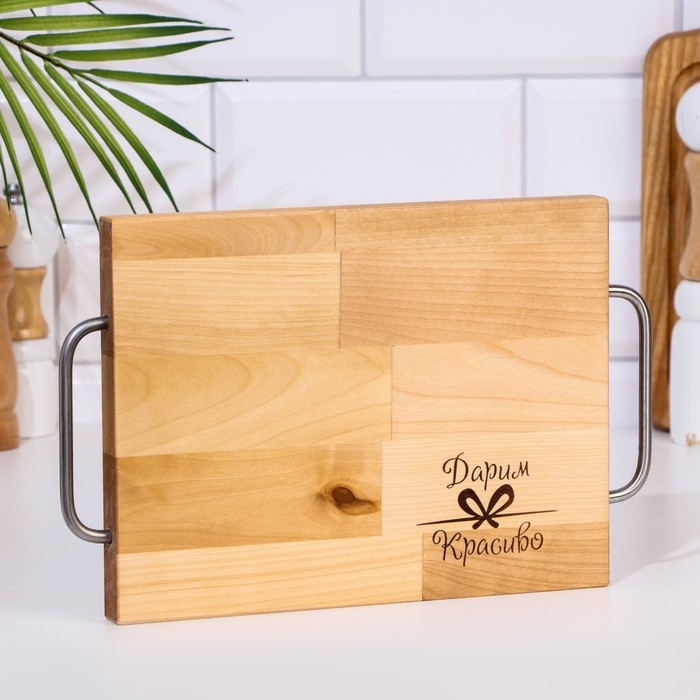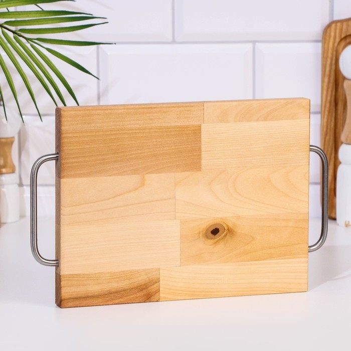 Доска разделочная и сервировочная "Прямоугольник" малая (металлические ручки) 28х18х1,8 см