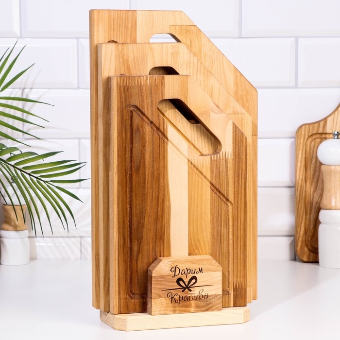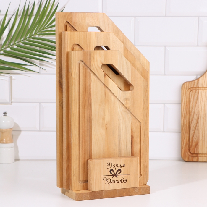 Набор досок разделочных "Угловая ручка" в кассете (38х22х1,8;34х20х1,8;30х18х1,8) см