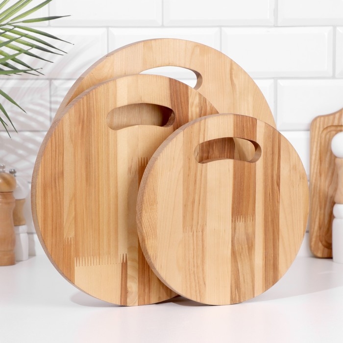 Набор досок разделочных "Круг с ручкой" в кассете D=35х1,8;30х1,8;25х1,8 см