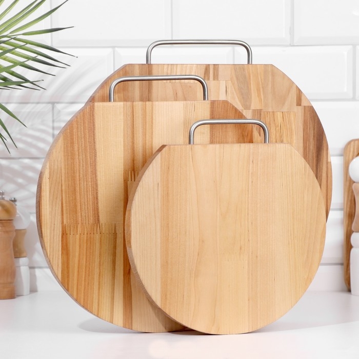 Набор досок разделочных "Круг" (металлическая ручка) в кассете D=35х1,8;30х1,8;25х1,8 см