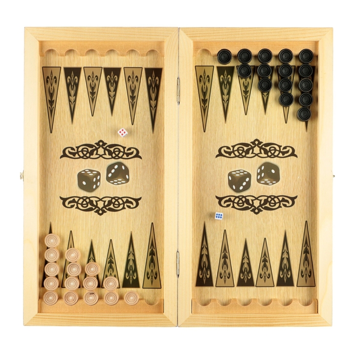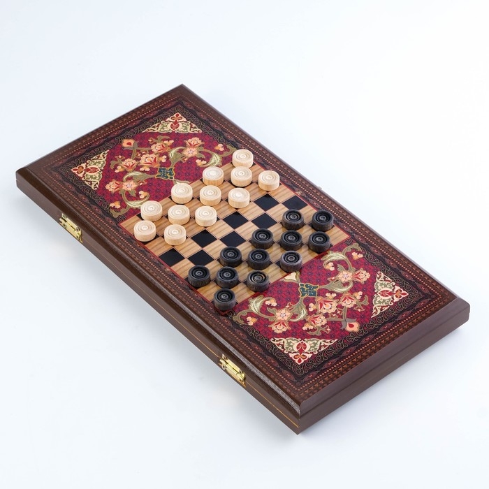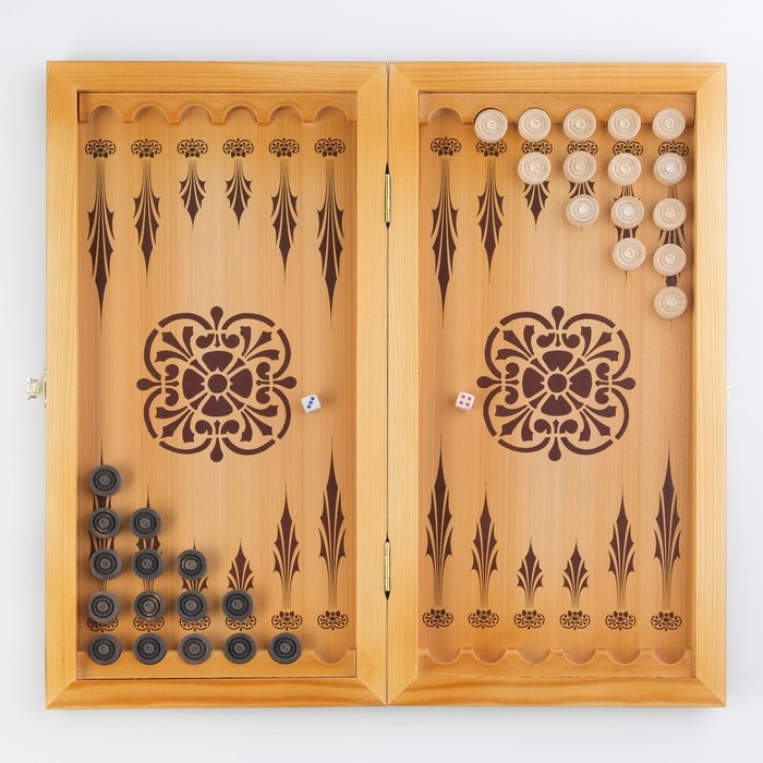 Нарды деревянные большие, настольная игра "Узор", 40 х 40 см, с полем для игры в шашки