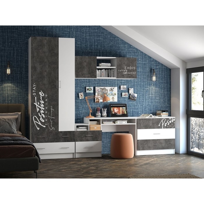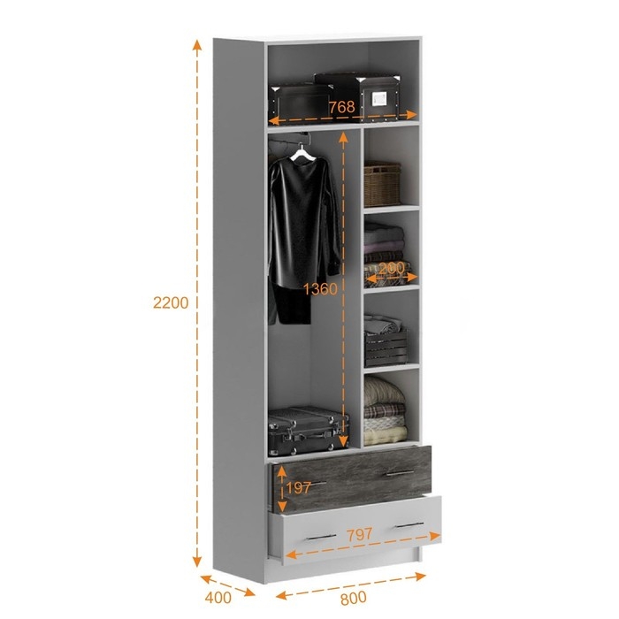 Шкаф с ящиками Вега Позитив, 800х2200х400, Белый/Бетон темный
