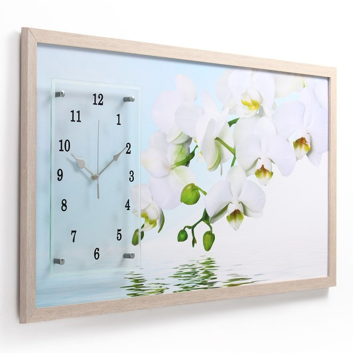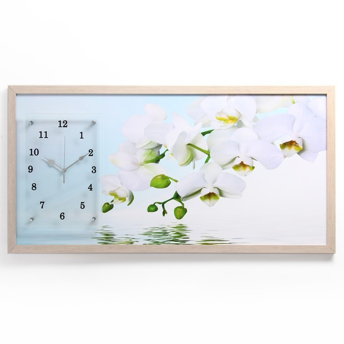 Часы-картина настенные, интерьерные "Водная гладь и белые орхидеи", 50 х 100 см, на холсте, бесшумны