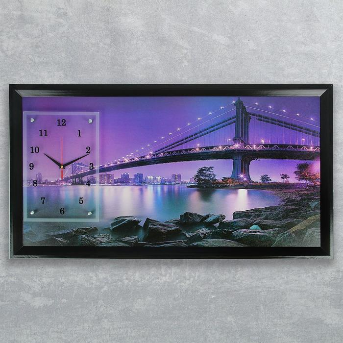 Часы-картина настенные, интерьерные "Бруклинский мост", 50 х 100 см, на холсте, бесшумные