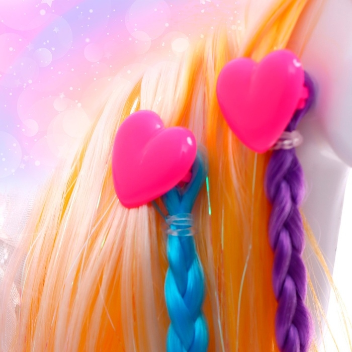 - Длинную гриву можно расчесать. А с помощью аксессуаров и цветных прядок из искусственных волос сделать причёску лошадке.