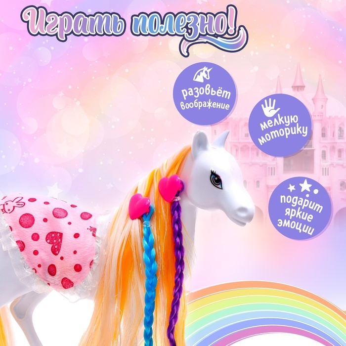 Яркий единорог поможет развить воображение, эмоциональное восприятие и мелкую моторику, а также сделает игровые сюжеты более разнообразными.