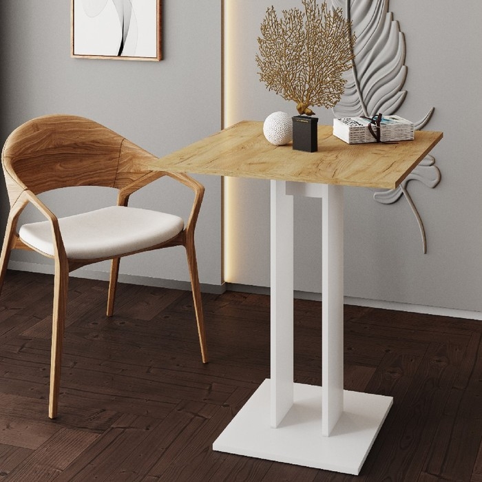 Стол обеденный на одной ножке Сандро, 650х650х780, Белый/Дуб крафт золотой