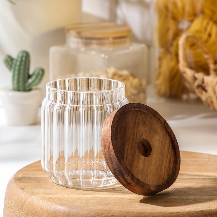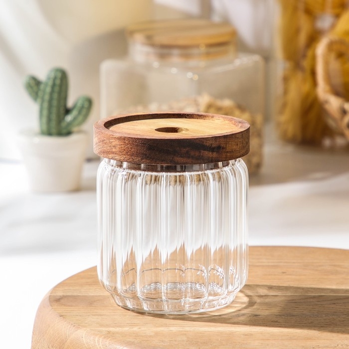 Банка стеклянная для хранения сыпучих продуктов Magistro «Дафна», 400 мл, 9×10,5 см, с деревянной крышкой