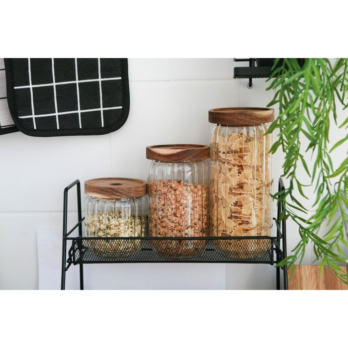 Банка для сыпучих продуктов «Дафна» изготовлена из экологичных материалов: стекла и дерева акации. Имеет плотно закрывающуюся крышку, которая защищает продукты от влаги и посторонних запахов. В ёмкости удобно хранить крупы, специи, макаронные изделия, сахар, муку и бобовые.