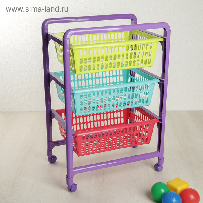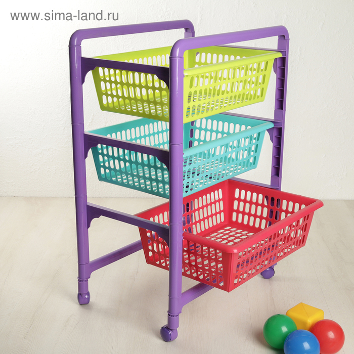 Этажерка для игрушек на колесах «Радуга», с выдвигающимися лотками, цвет МИКС