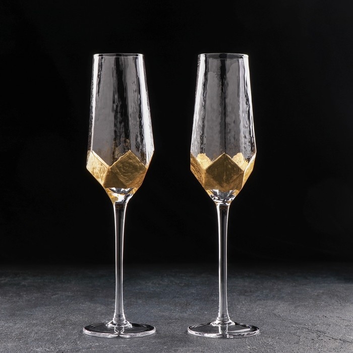 Набор бокалов для шампанского стеклянный Magistro «Дарио», 180 мл, 7×27,5 см, 2 шт, цвет золотой