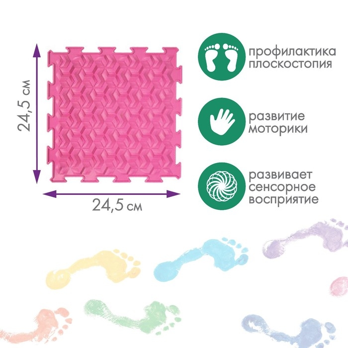 Ортопедическое напольное покрытие состоит из отдельных модулей, которые соединяются между собой по принципу пазла. По массажному коврику можно ходить или выполнять упражнения, стоя на нём. Во время занятий стимулируются рецепторы на стопе и формируются её физиологические своды. Изделие применяется для профилактики плоскостопия у детей, массажа стоп и снятия усталости ног.