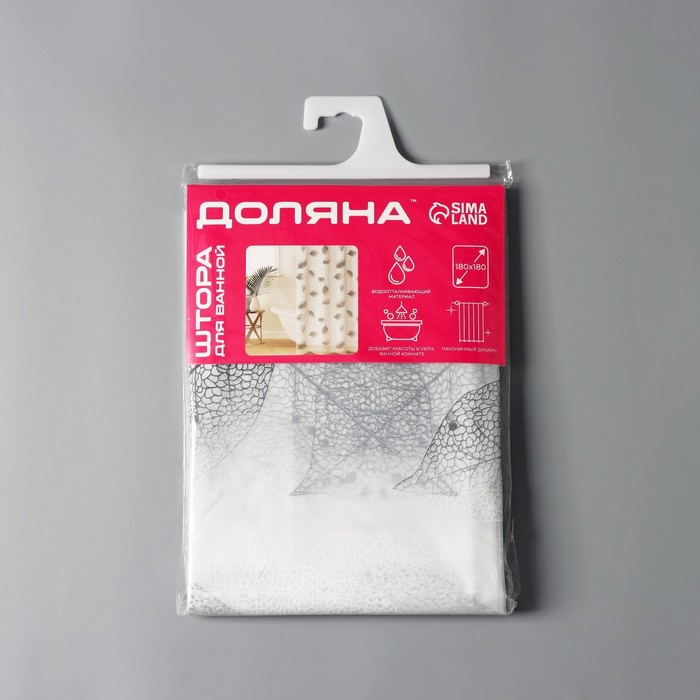 Штора для ванны Доляна «Чёрно-белые листья», 180×180 см, EVA