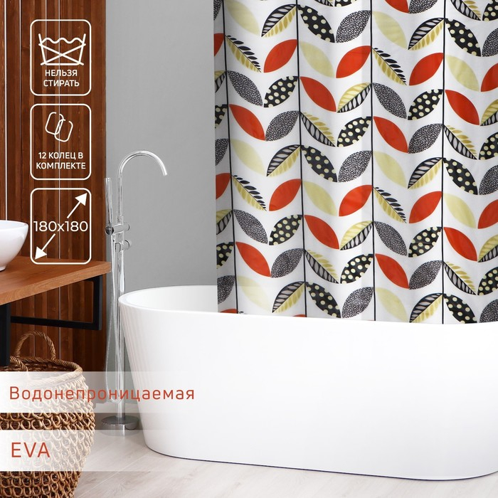 Штора для ванны Доляна «Листочки», 180×180 см, EVA