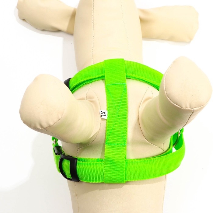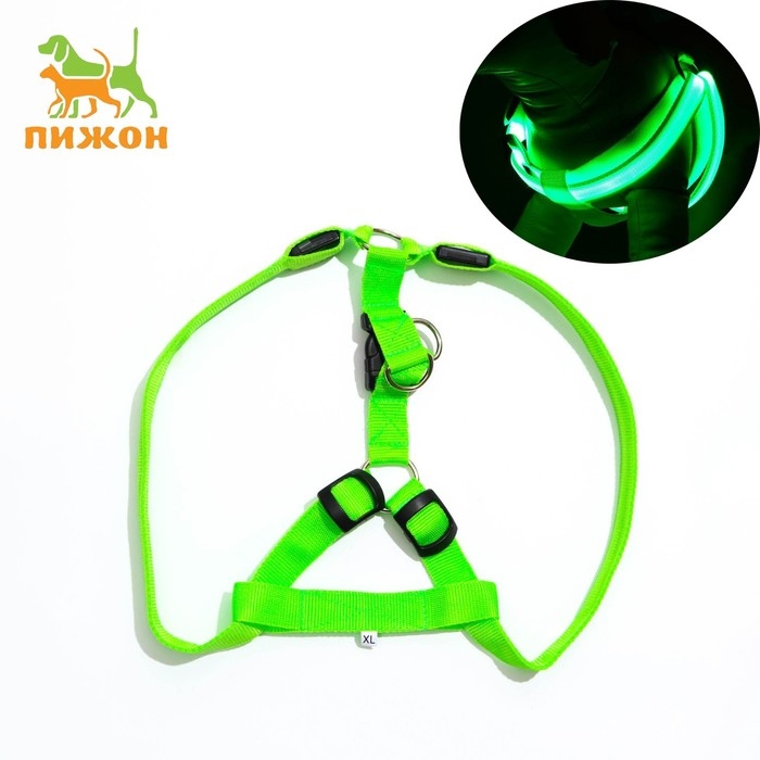 Шлейка светящаяся размер XL, стропа 2,5 см, ОГ 60-70 см, 3 режима свечения зелёная