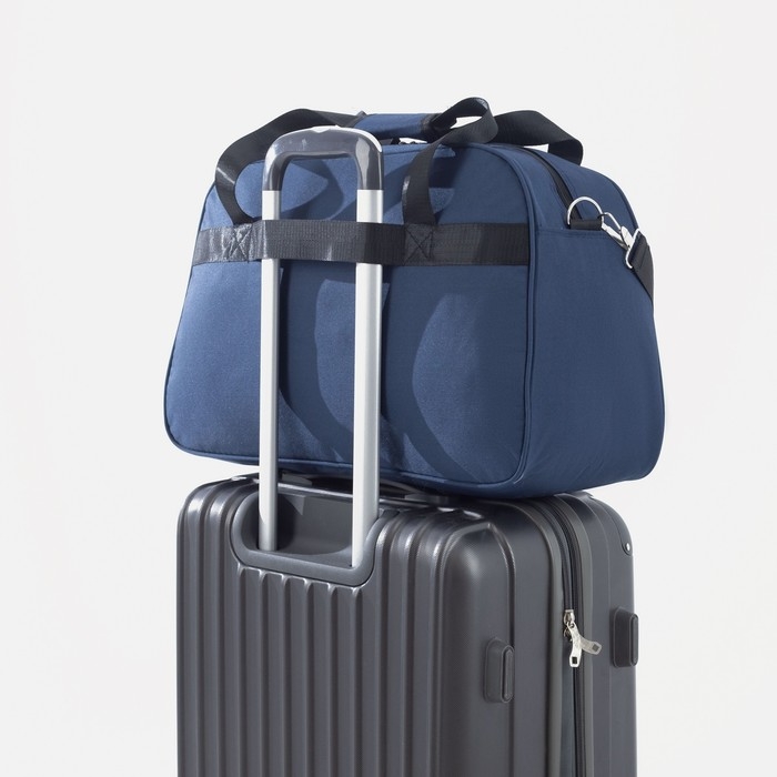 Сумка дорожная на молнии, 2 наружных кармана, держатель для чемодана, длинный ремень, цвет синий