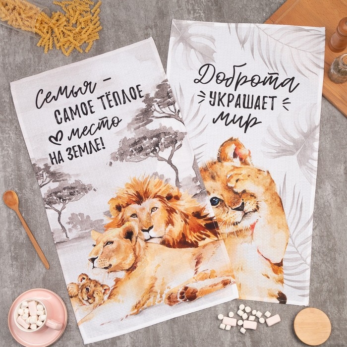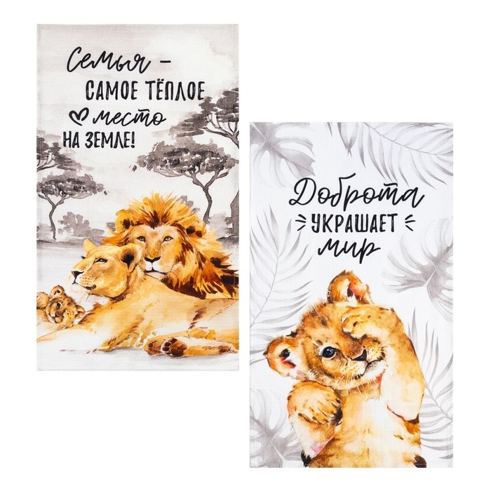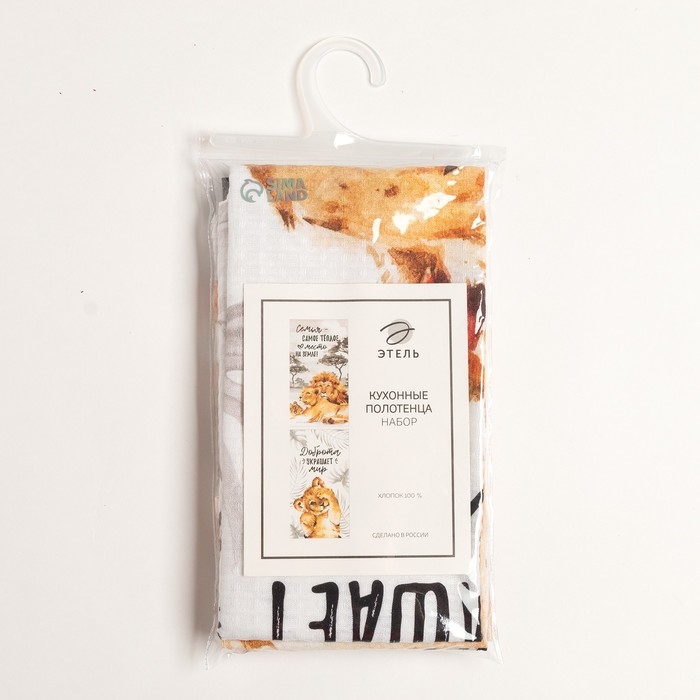 Набор кухонных полотенец Этель «Семья» 40х73см -2 шт, 100% хлопок, вафля 160 г/м2