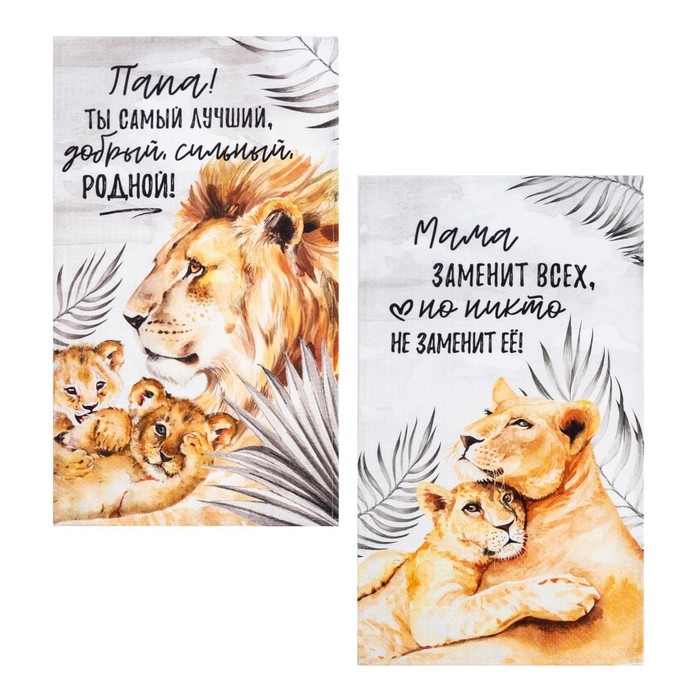 Набор кухонных полотенец Этель «Семейство кошачьих» 40х73см - 2 шт, 100% хлопок, вафля 160 г/м2