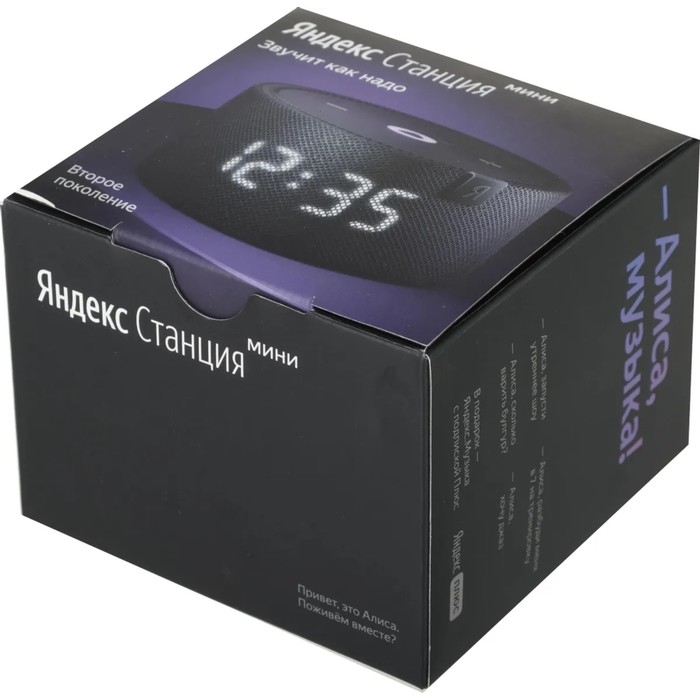 Умная колонка "Новая Яндекс Станция Мини" (YNDX-00020K), голосовой помощник Алиса,10Вт, с часами, черная