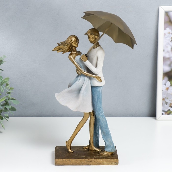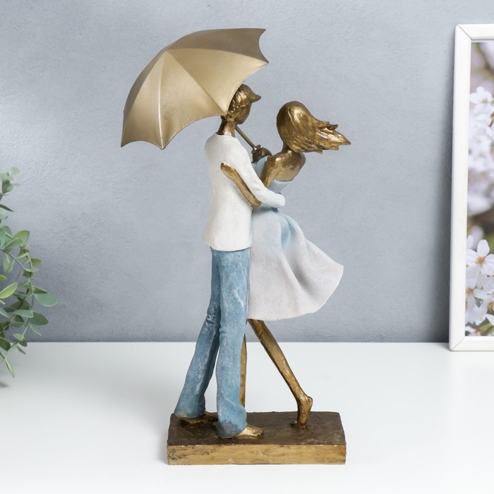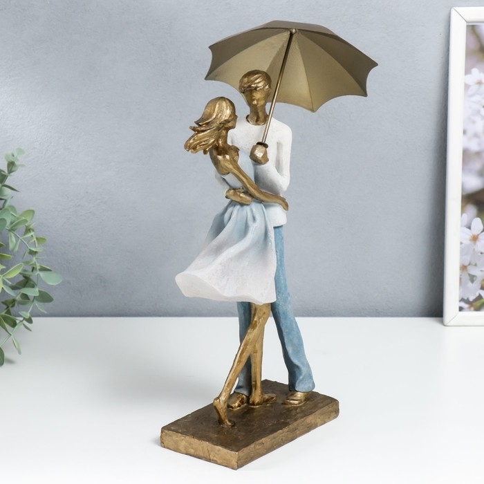 Сувенир полистоун "Влюблённая пара под зонтом" бело-голубой градиент 37,5/31х8,5х15 см