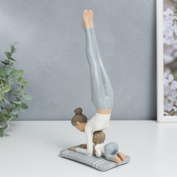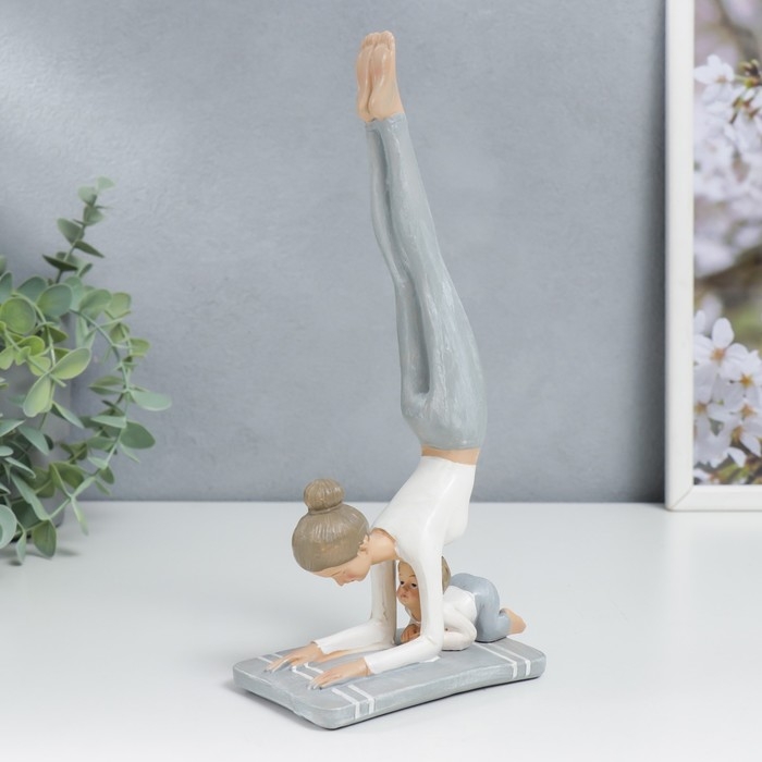 Сувенир полистоун "Мама в стойке на предплечьях, с малышом" бело-серый 24х6,5х11 см