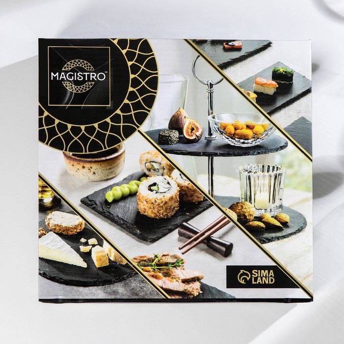 Представляем блюдо из сланца Magistro Valley стильное и практичное решение для вашей кухни. Этот аксессуар изготовлен из натурального камня, что обеспечивает его долговечность и устойчивость к повреждениям. Блюдо имеет элегантный черный цвет и квадратную форму, что позволяет ему гармонично вписаться в любой интерьер.