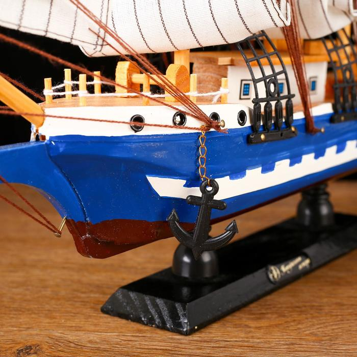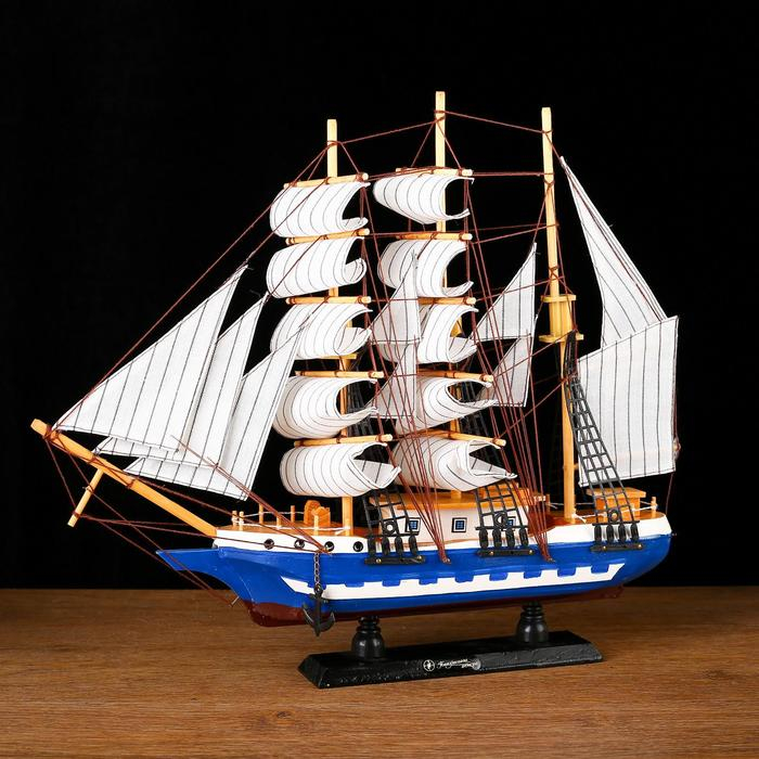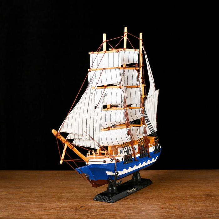 Корабль сувенирный средний «Испаньола», борта бело-синие, паруса белые, 43х39 х 9 см