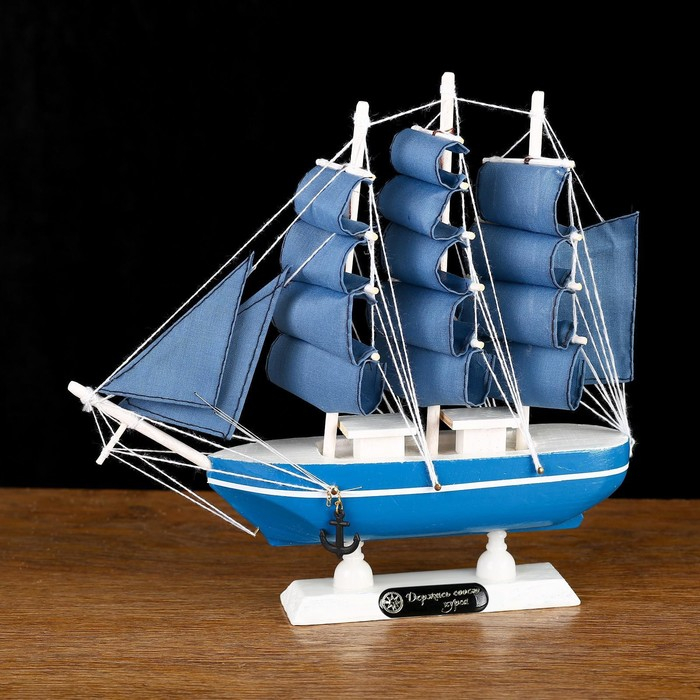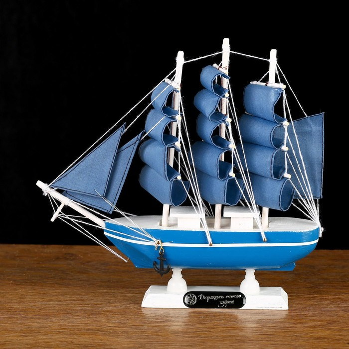 Корабль сувенирный малый «Аскольд», борта голубые с полосой, паруса голубые, 23,5×4,5×23 см