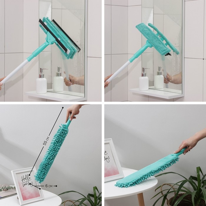 Универсальный набор для уборки: черенок, щётка из микрофибры, сгон, окномойка, съёмник