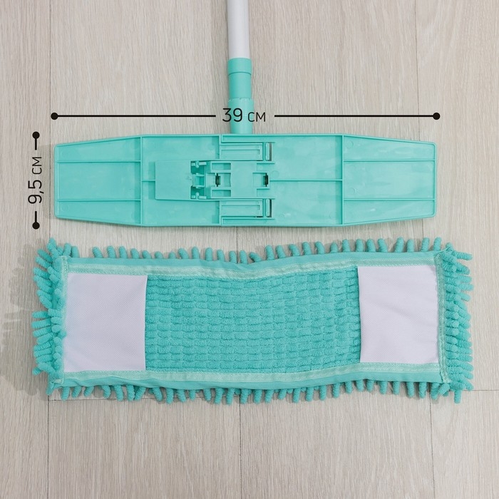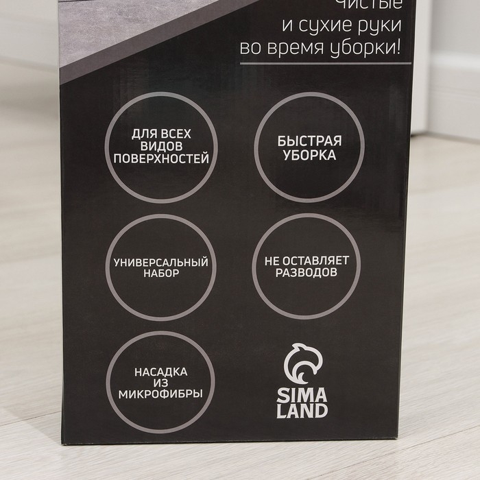 - Плоская платформа с насадкой из микрофибры позволяет без труда мыть под шкафами и кроватями.