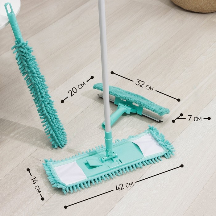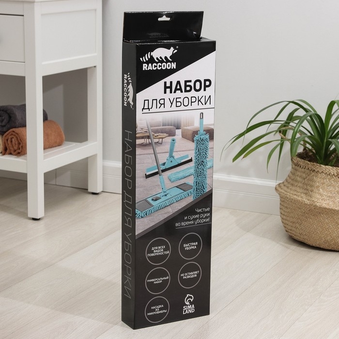 Комплект для уборки Raccoon «Универсальный», 4 предмета: окномойка, швабра, щётка для пыли и черенок