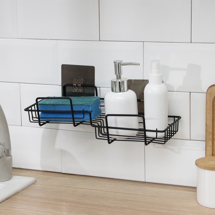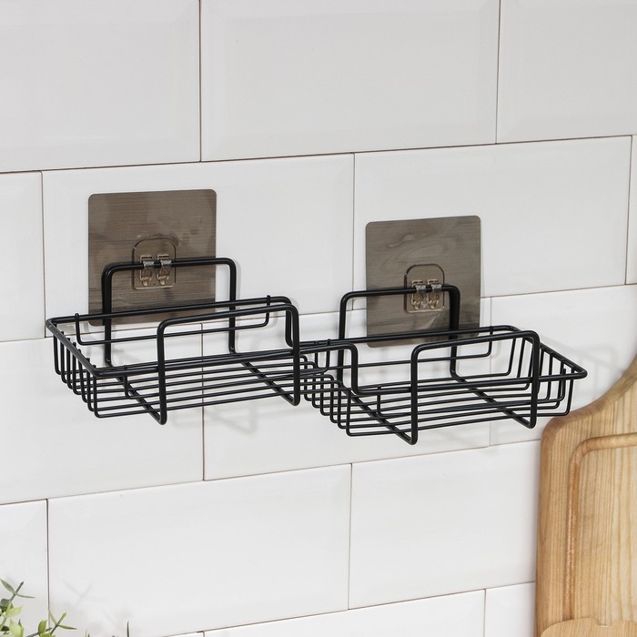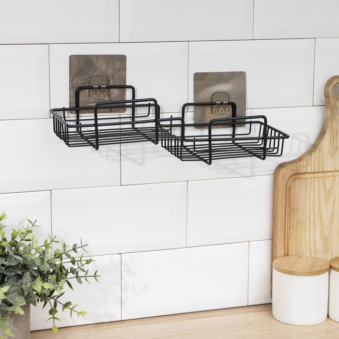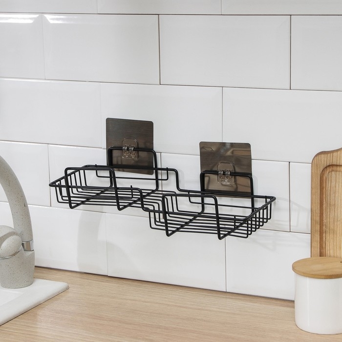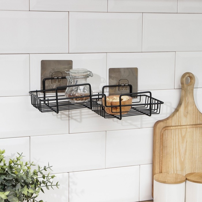 Полка на липучке Доляна, 31×11×6 см, цвет чёрный