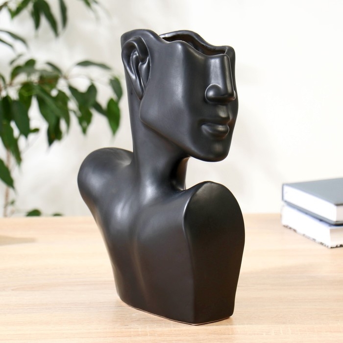 Ваза керамика настольная "Изящный профиль" h-28 см, чёрный